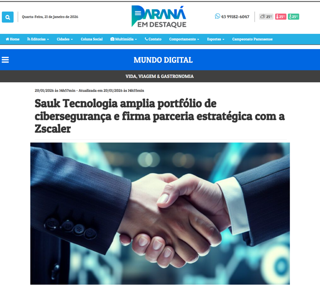 Clique aqui e confira a notícia oficial: Sauk Tecnologia amplia portfólio de cibersegurança e firma parceria estratégica com a Zscaler – Paraná em Destaque